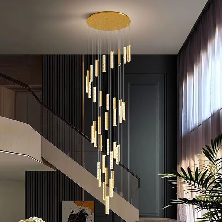 Lampu Terowongan Tangga Lampu Pendant Modern Penerangan Tangga Lampu Jatuh Panjang Lampu Plafon Kristal