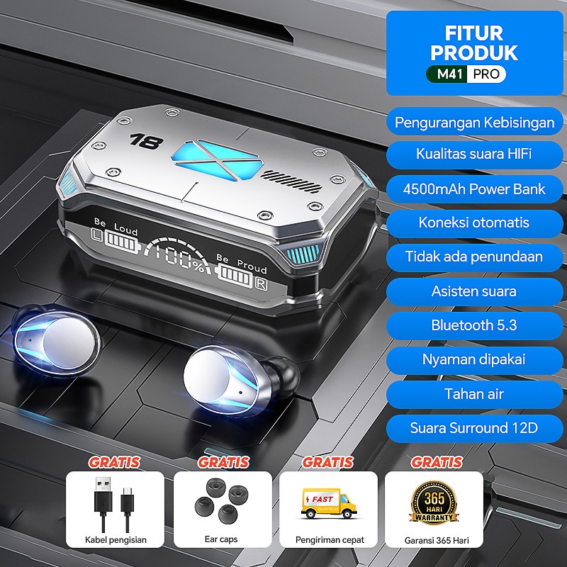 TWS Bluetooth 5.3 Newest Version M41 Headset Bluetooth Full Bass Stereo 4500mah Power Bank Wireless Earphone