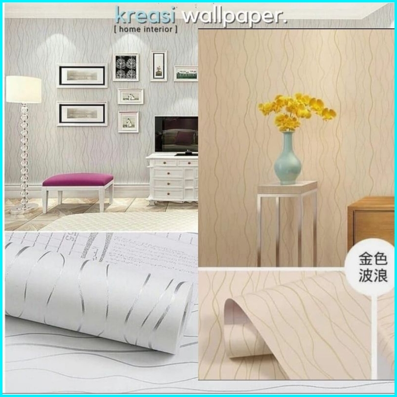 Wallpaper Sticker Dinding 3d Ulir Salur Silver Stiker