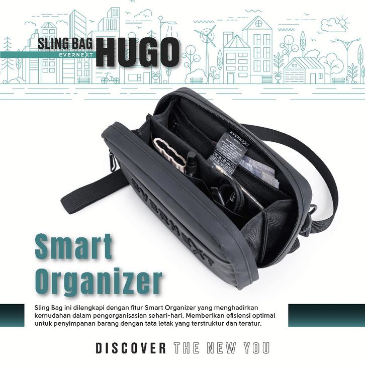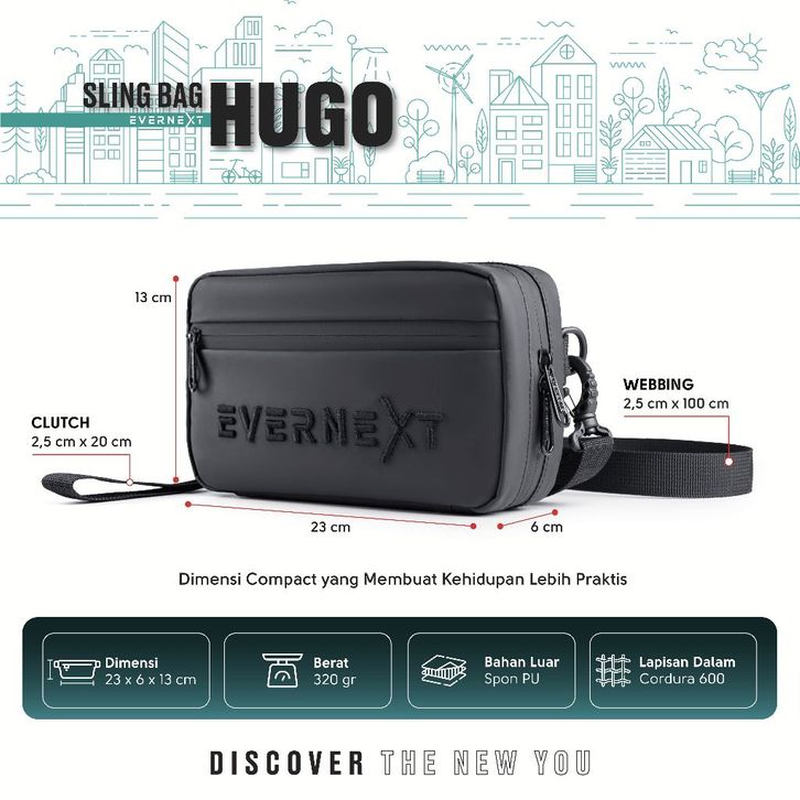 Tas Selempang Pria Multifungsi Evernext Sling Bag Hugo Anti Air 3in1 - Desain Simpel & Elegan Original Official Store