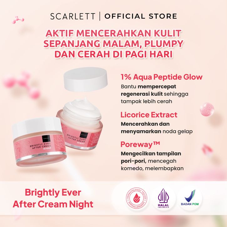 Scarlett Whitening Brightly Ever After Night Cream - Moisturizer Krim Pelembab Wajah untuk Mencerahkan Melembabkan & Mem