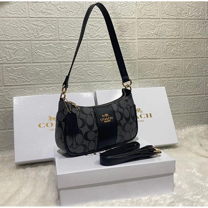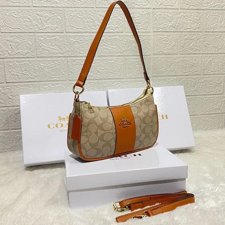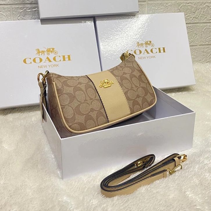 Tas Wanita COACH Selempang Signature Plat 2 tali Top Handie + Box