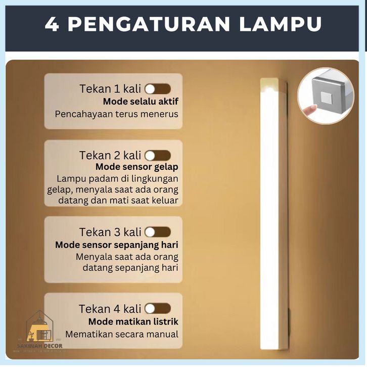 PROMO Lampu Sensor Gerak Magnetic Motion Lampu Stick Panjang LED/Lampu Tidur LED Tombol Multifungsi