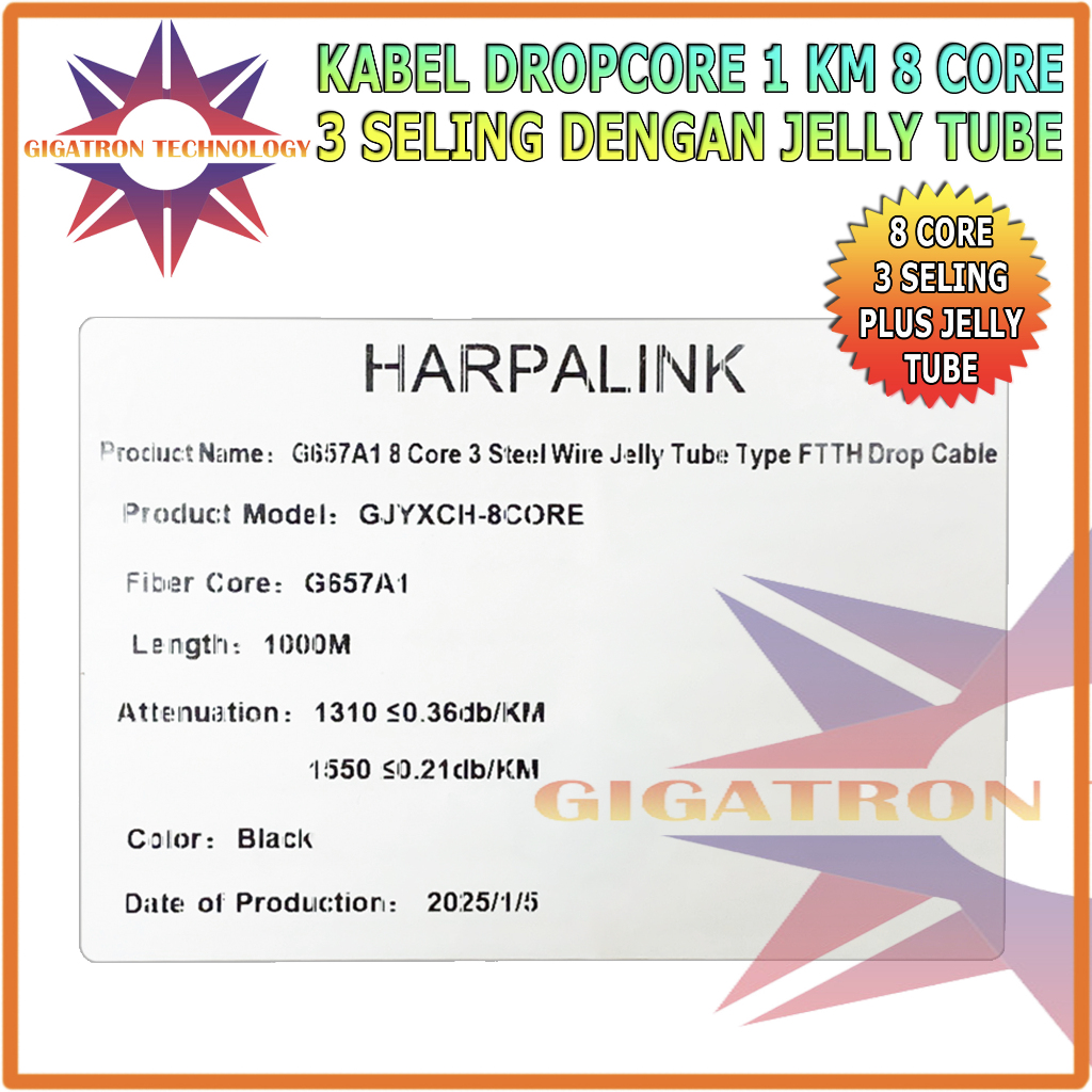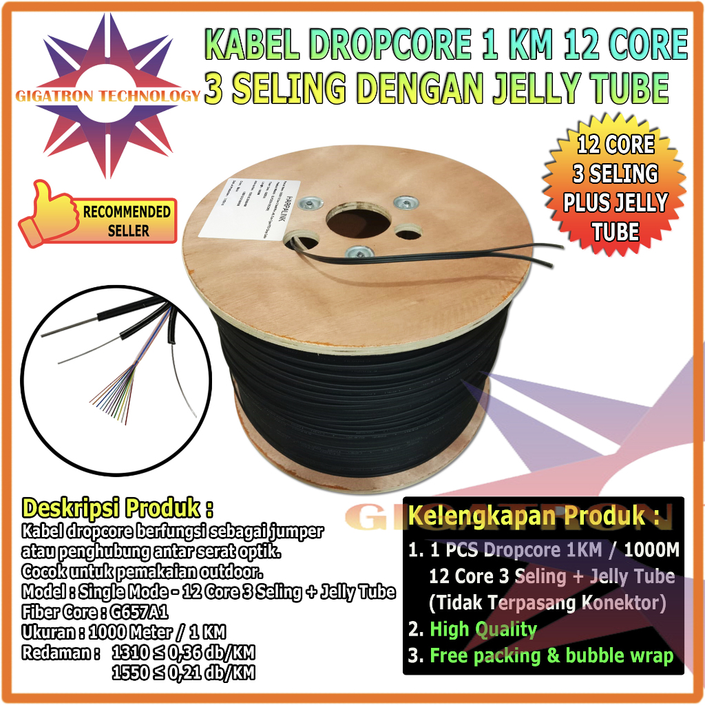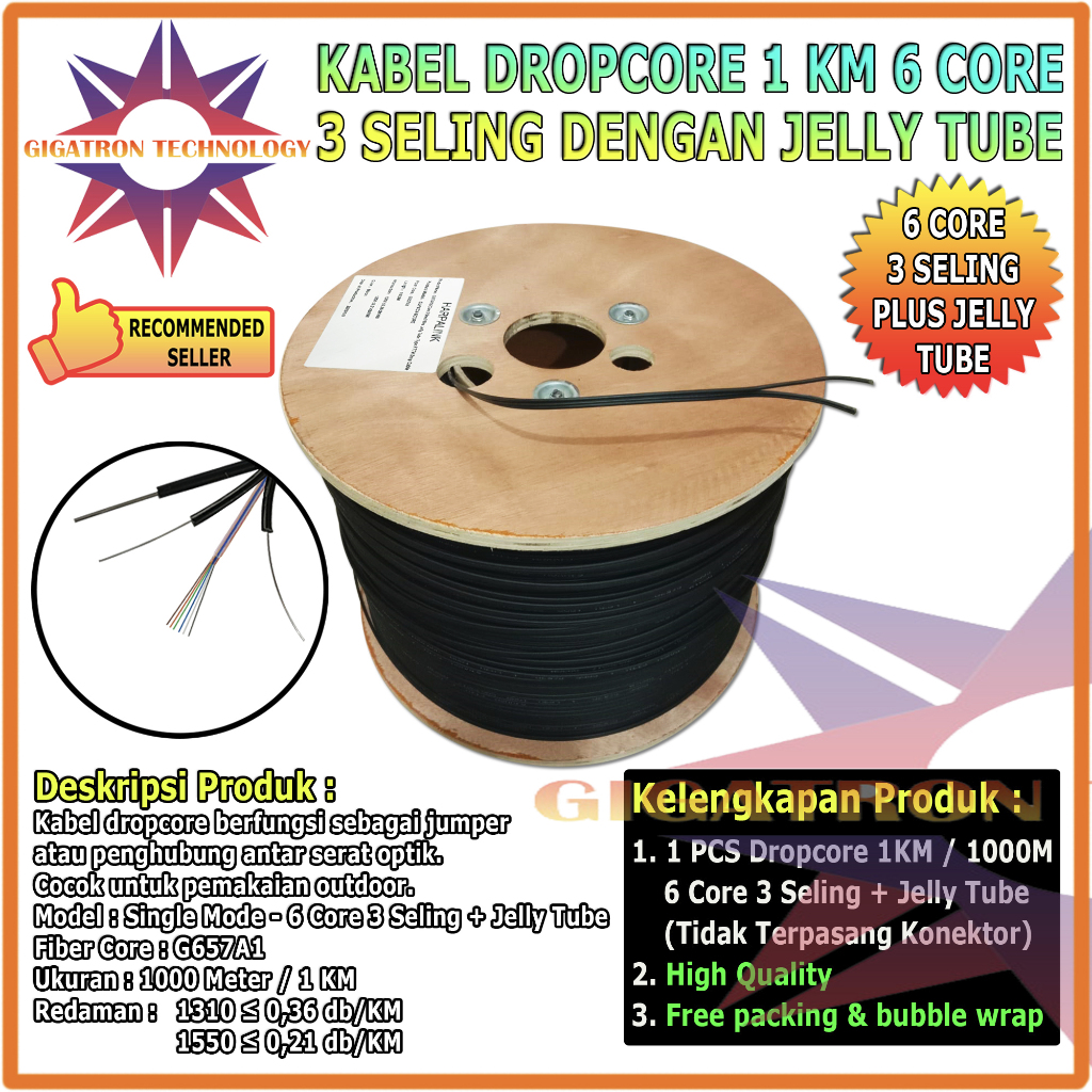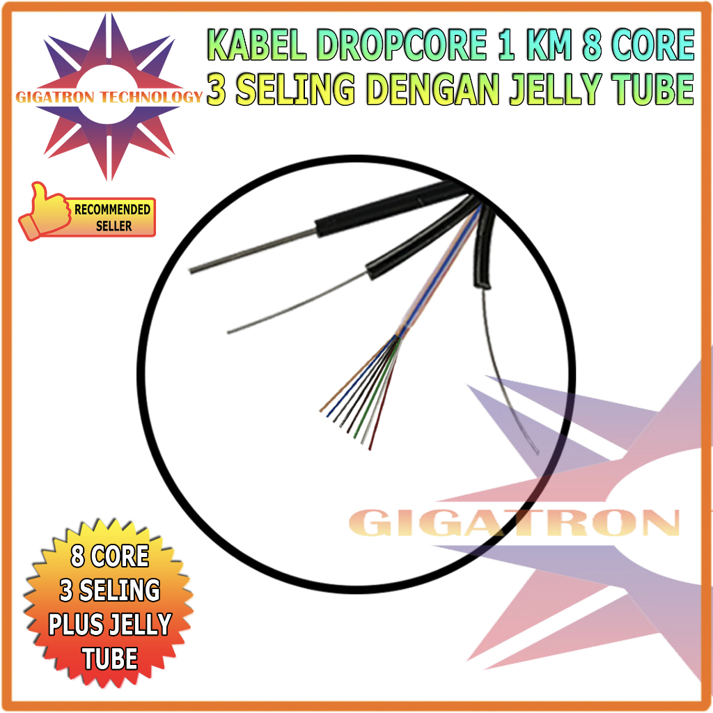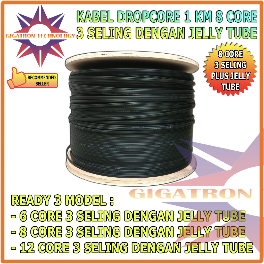 KABEL FO DROPCORE 8 CORE JELLY TUBE KABEL DROPCORE FIBER OPTIC 1000 METER 8 CORE 3 SELING 1KM KABEL FIBER OPTIC DROPCORE 1000M 8C