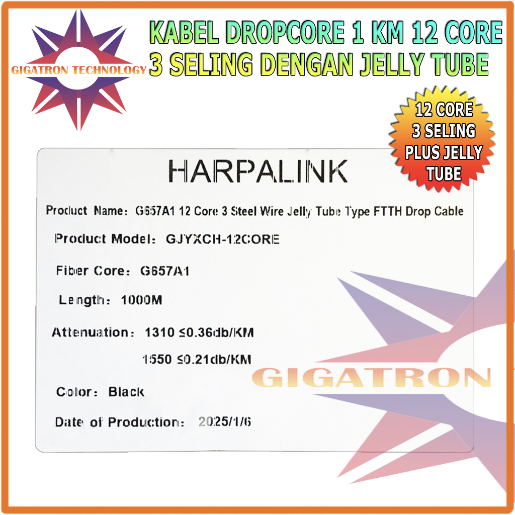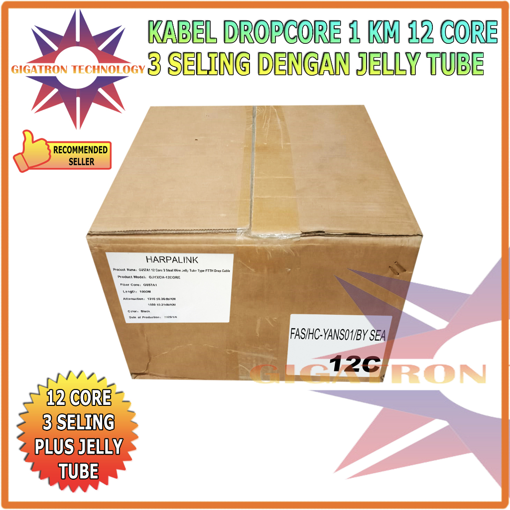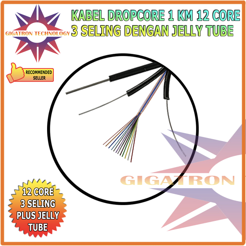 KABEL FO DROPCORE 12 CORE JELLY TUBE KABEL DROPCORE FIBER OPTIC 1000 METER 12 CORE 3 SELING 1KM KABEL FIBER OPTIC DROPCORE 1000M 12C