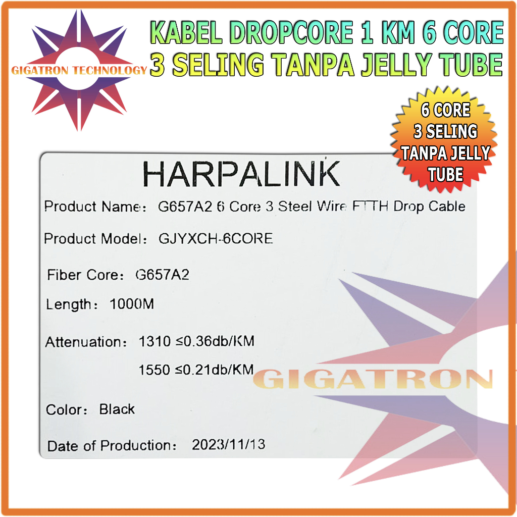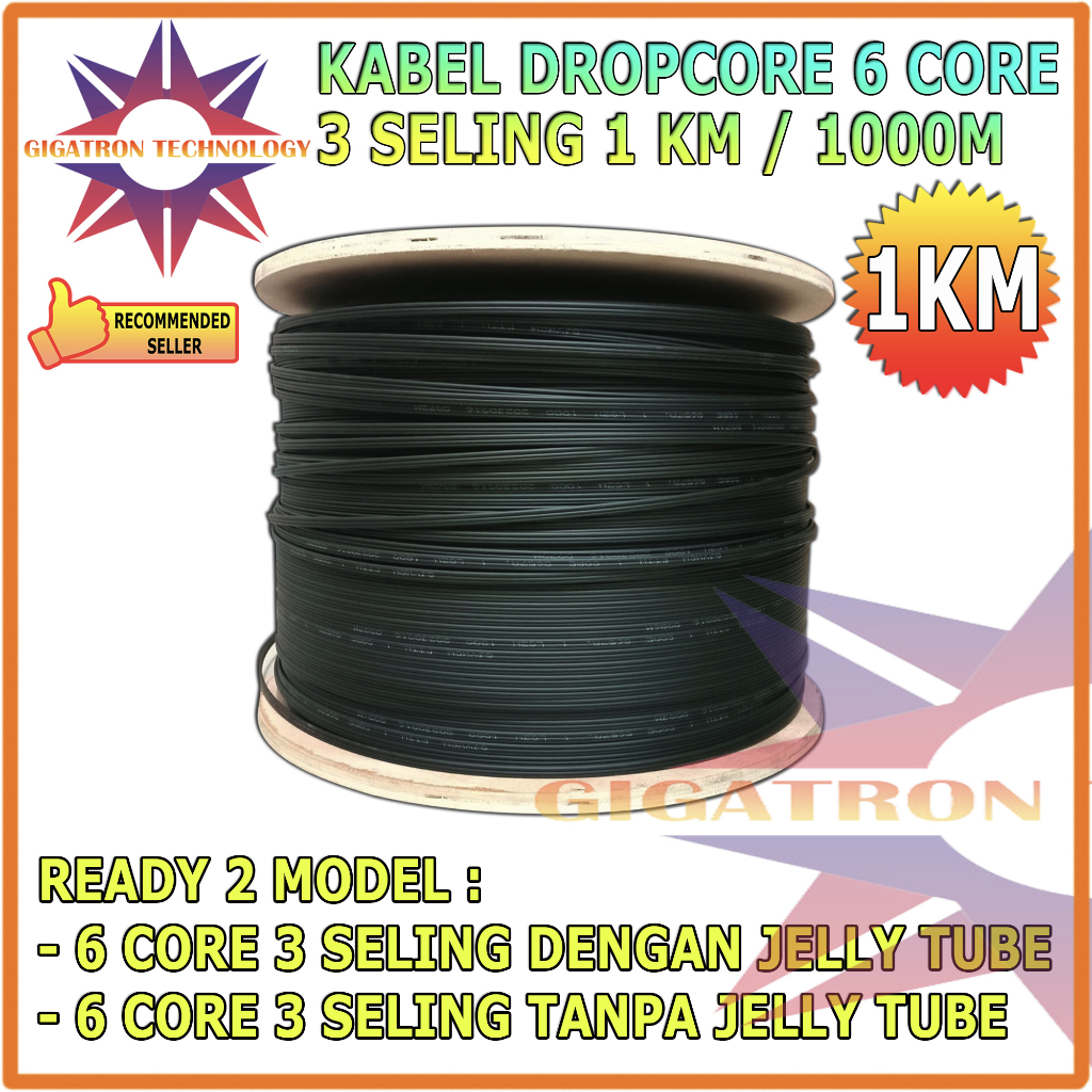 KABEL FO DROPCORE 6 CORE JELLY TUBE KABEL DROPCORE FIBER OPTIC 1000 METER 6 CORE 3 SELING 1KM KABEL FIBER OPTIC DROPCORE 1000M 6C