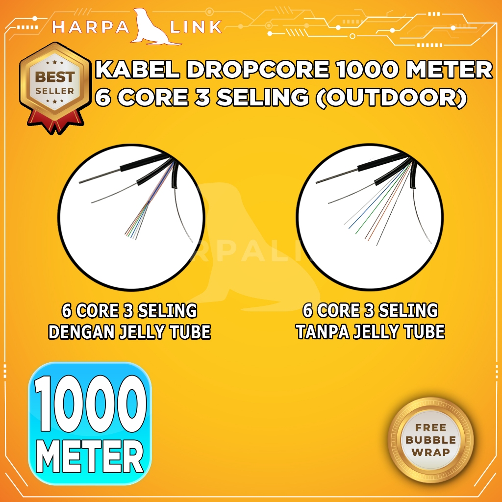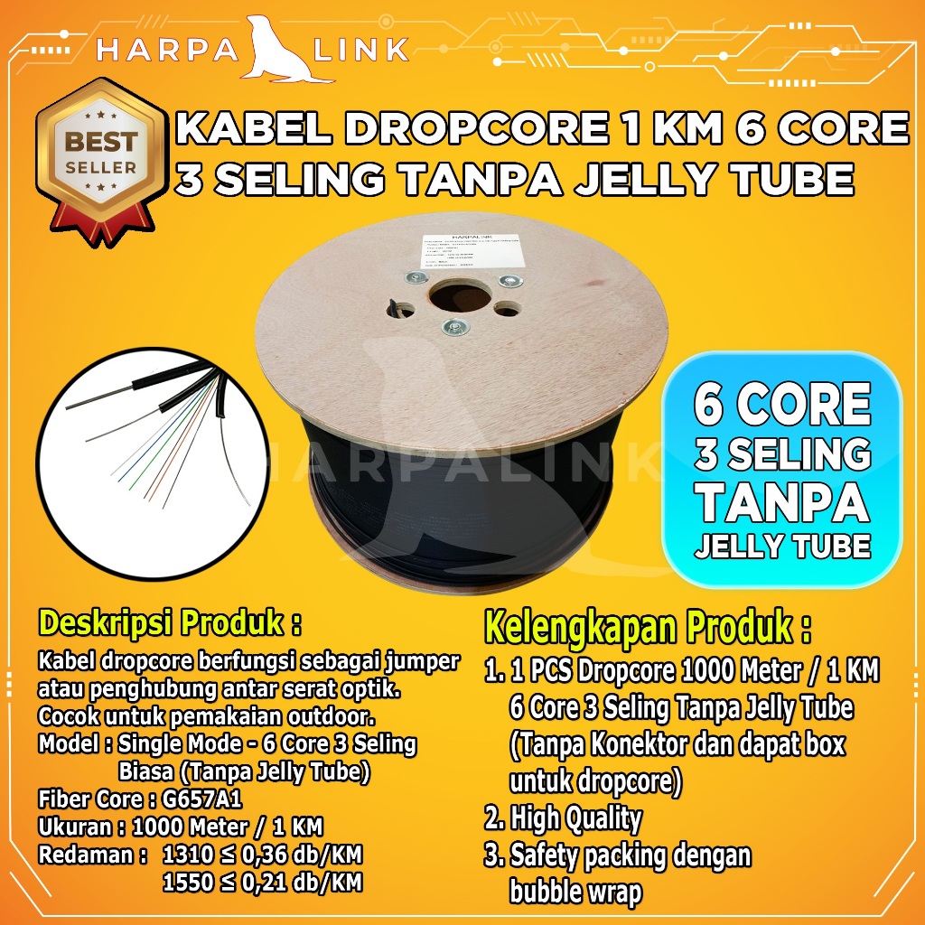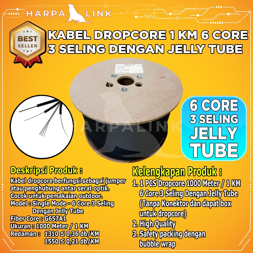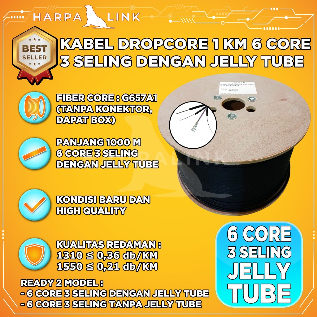 KABEL FO DROPCORE 6 CORE JELLY TUBE KABEL DROPCORE FIBER OPTIC 1000 METER 6 CORE 3 SELING 1KM KABEL FIBER OPTIC DROPCORE 1000M 6C