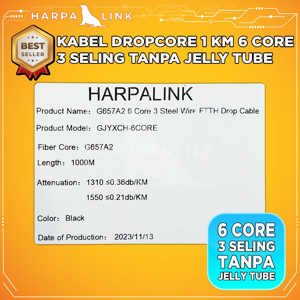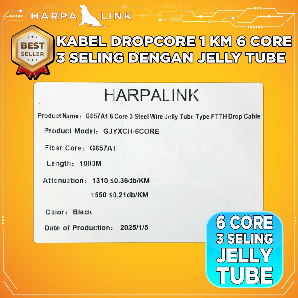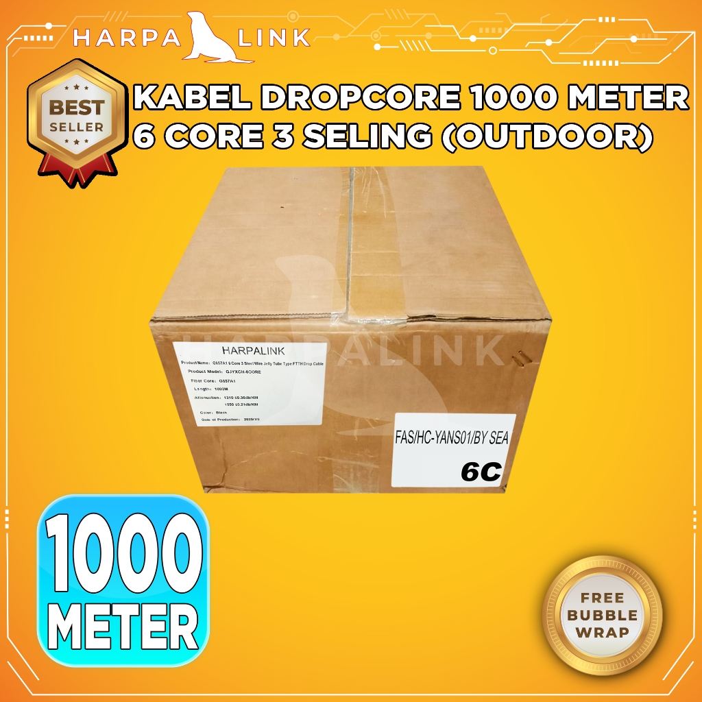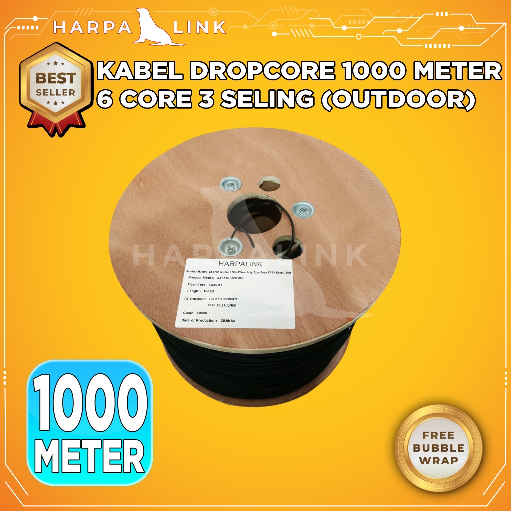 KABEL FO DROPCORE 6 CORE JELLY TUBE KABEL DROPCORE FIBER OPTIC 1000 METER 6 CORE 3 SELING 1KM KABEL FIBER OPTIC DROPCORE 1000M 6C