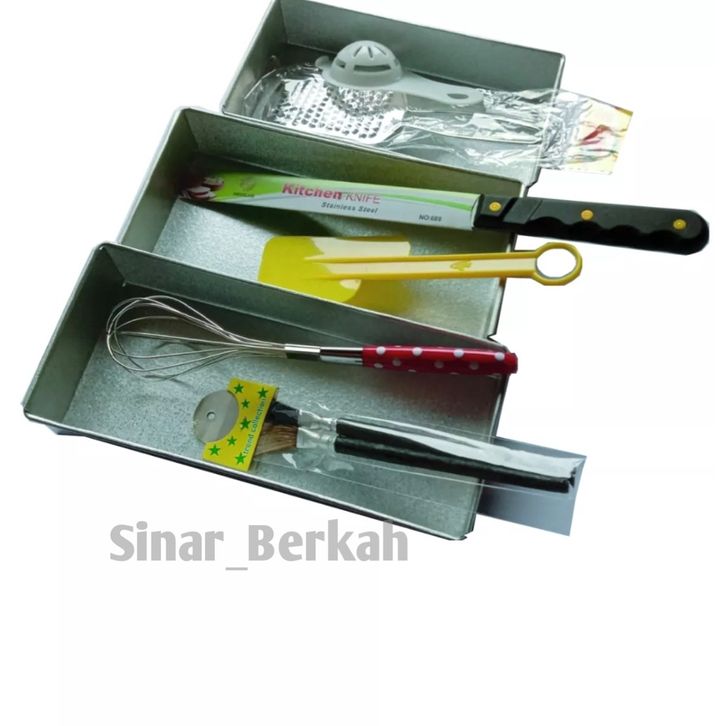 1 SET CETAKAN BROWNIES SUSUN 3+ PARUTAN KEJU+ PISAU KUE+ KOCOKAN TELUR+ KUAS KUE +PEMISAH TELUR+ SPATULA KUE BANYAK BON