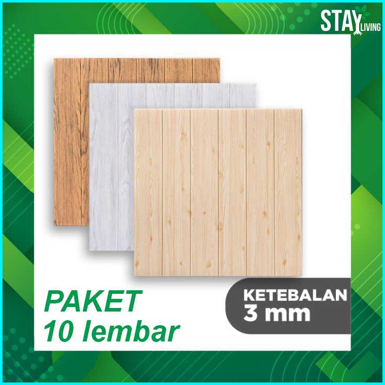Paket 10 Lembar Wallpaper Dinding Foam 3d Motif Kayu 70x70cm Wallfoam Wallstiker Dinding Kayu
