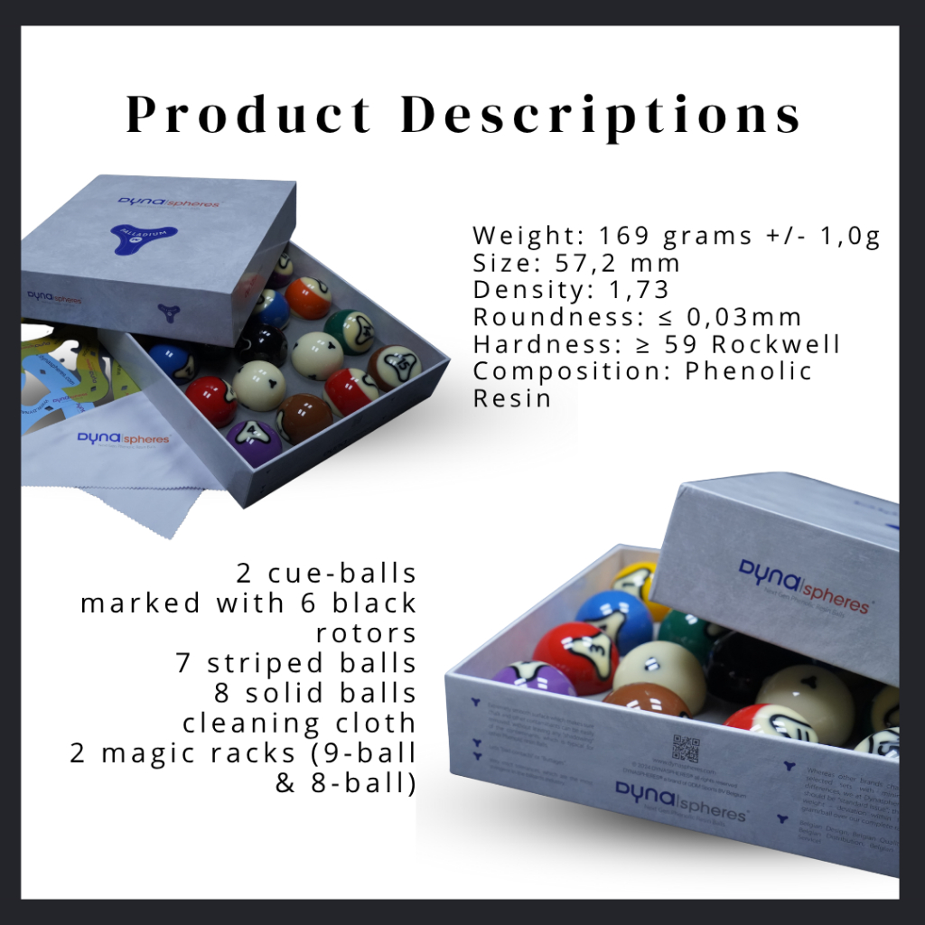 Bola Belgium DYNAspheres Palladium Billiard Ball Set 57.2mm Bola Billiard Meja 7 8 9 ft Feet 2 1/4" DYNAsphere DYNA sphe