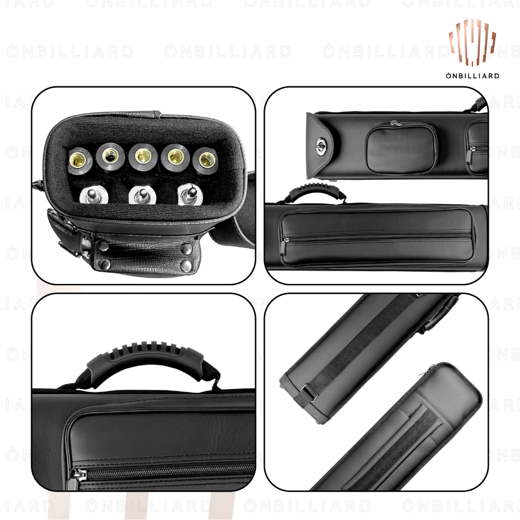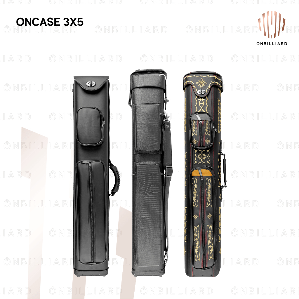ONcase Tas Stick Billiard 3x5 Cue Case Billiard PU Leather 3 Butt 5 Shaft Hard Case 8 Lubang Pipa dan Kain Biliar Billia