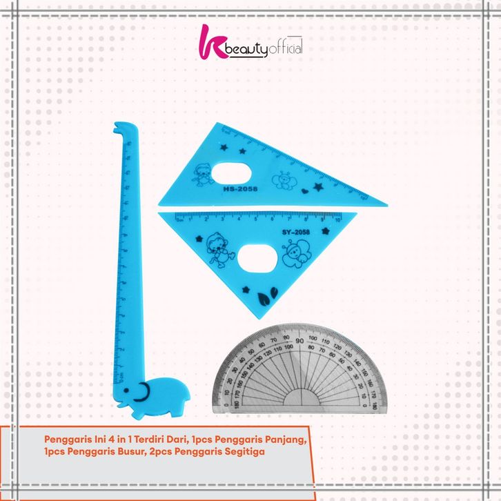KB-A66 Penggaris Plastik 15cm Set Isi 4 Alat Tulis Sekolah Kantor Karakter Motif Jerapah / Penggaris