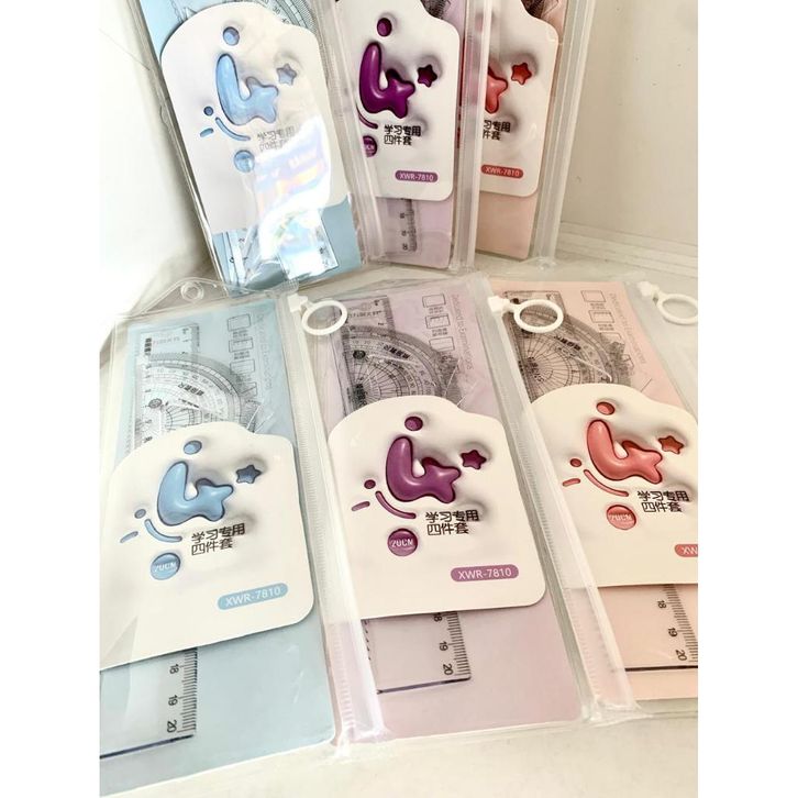 SATU SET 4 PCS Penggaris Set Dompet Karakter Lucu 4 in 1 2 Cm