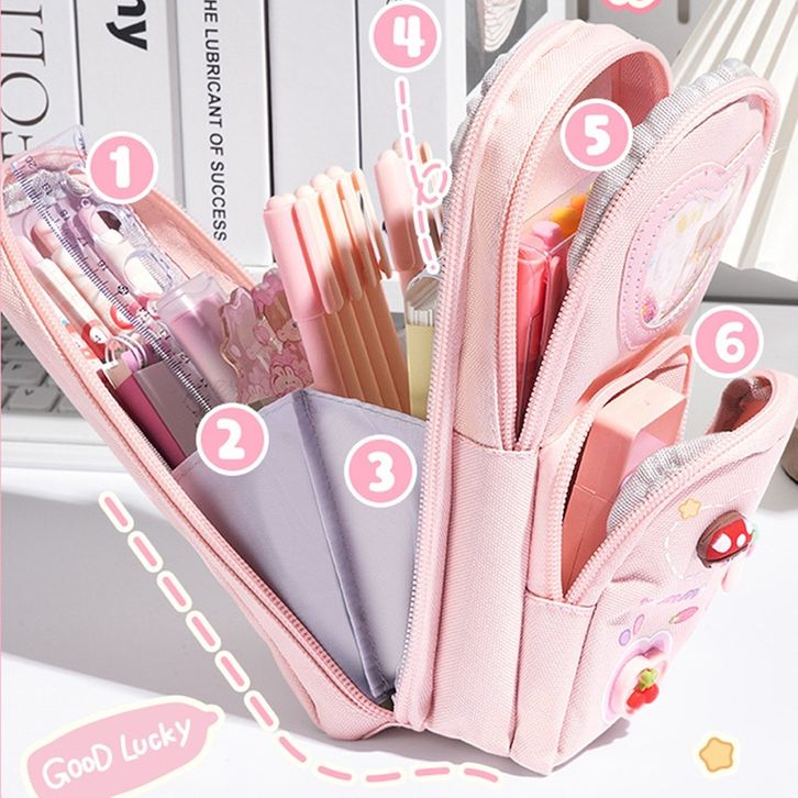 DotdingTempat Pensil Kotak 3D Anak Perempuan Lucu Besar Kotak pensil Kanvas 6 R Kotak Pensil Anak