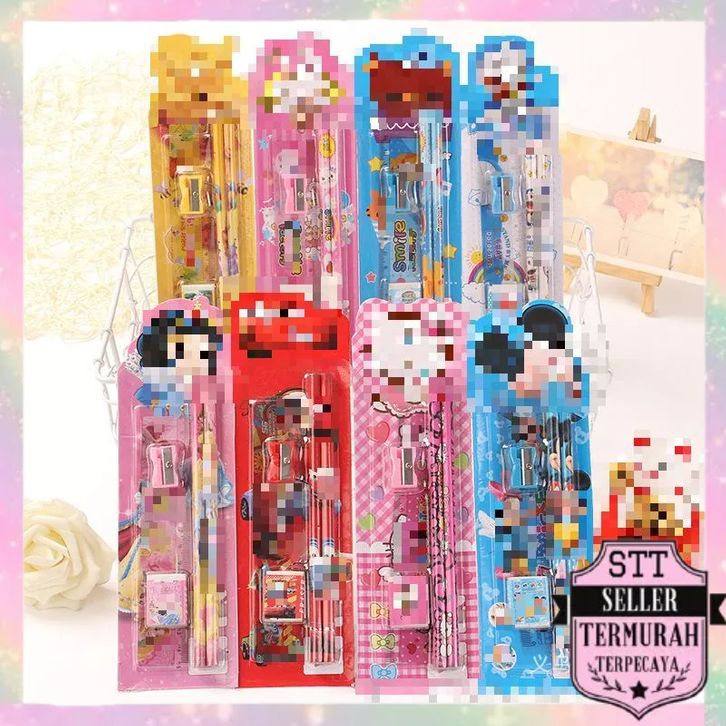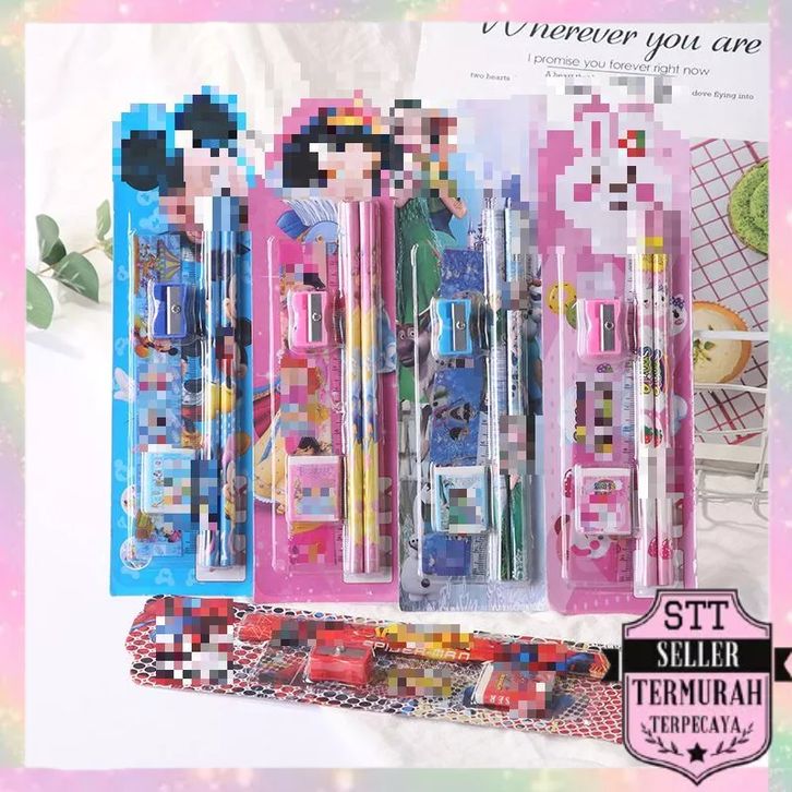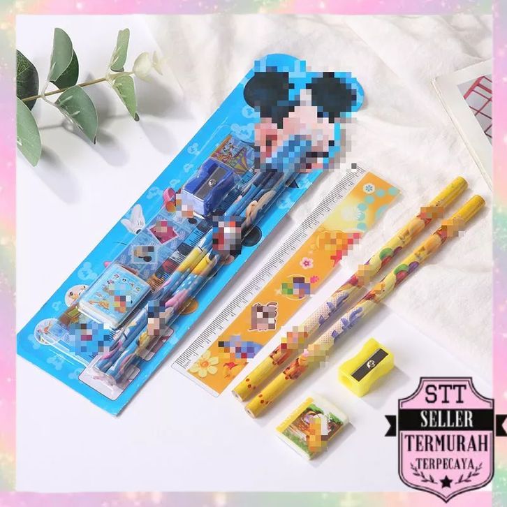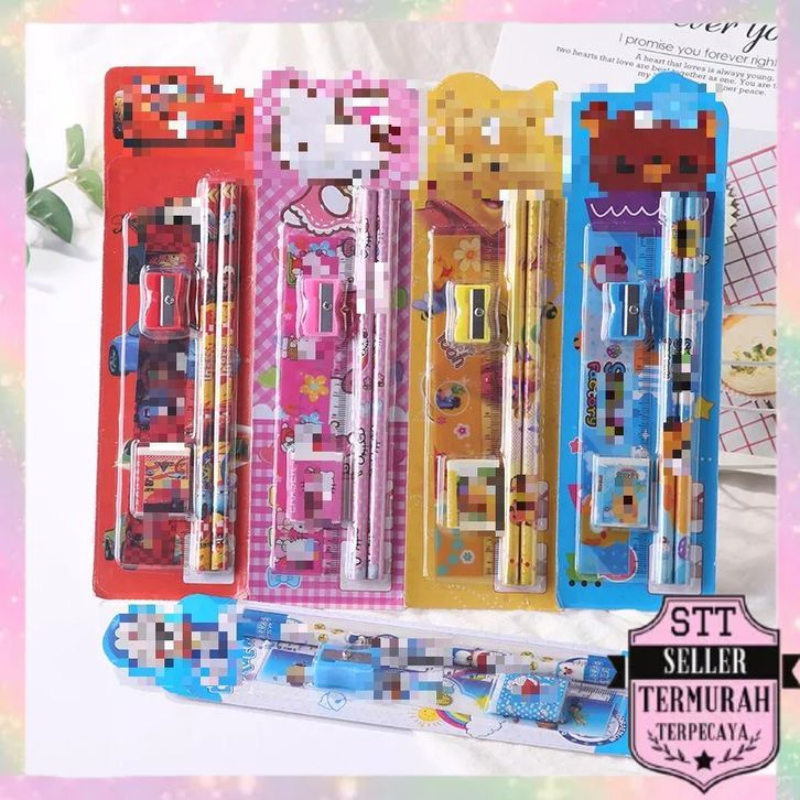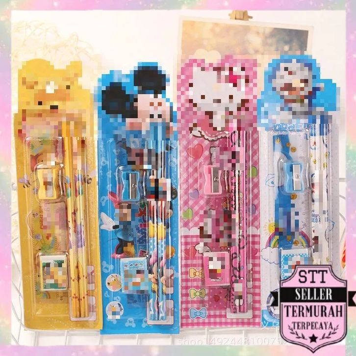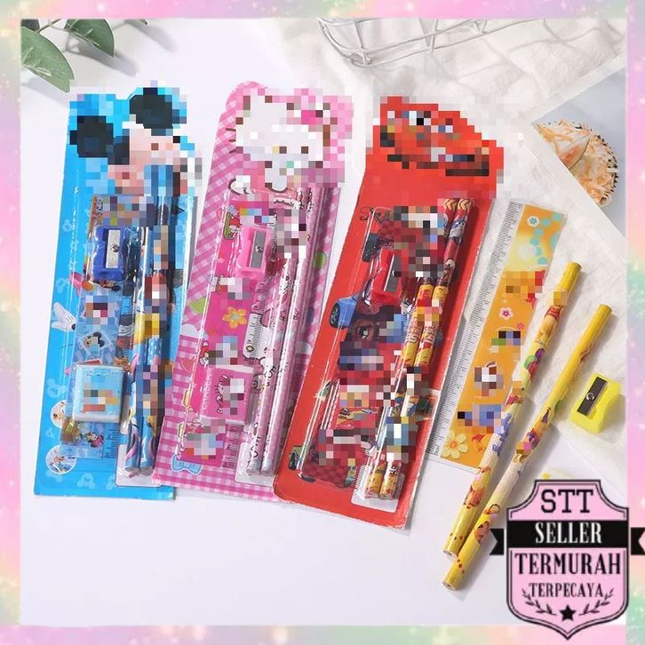 STT Stationery Set 5 in 1 Alat Tulis Anak Sekolah Penghapus penggaris Pensil Serutan Karakter Lucu