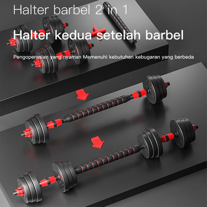 ketel bel 6 in 1 Dumbbell Barbel set peralatan fitness 20 kg bisa disambung Tiang Angkat