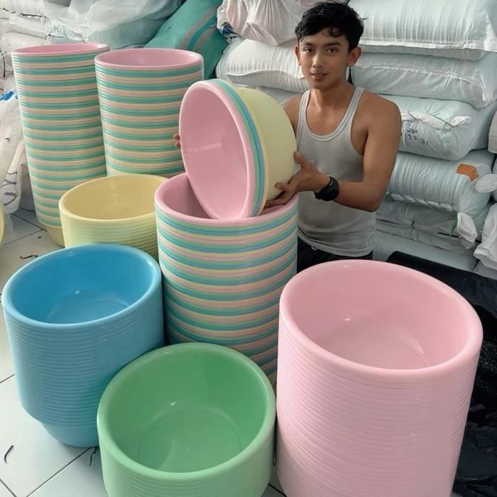 Promo Baskom warna warni serbaguna plastik isi 4pcs - Warna campur Sedang uk 28cm Keren