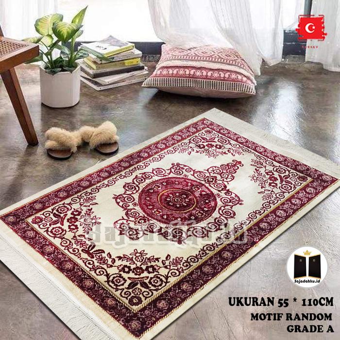 Murah Sajadah Turky Tebal Super spiegel white Terlaris - Hitam Elegan