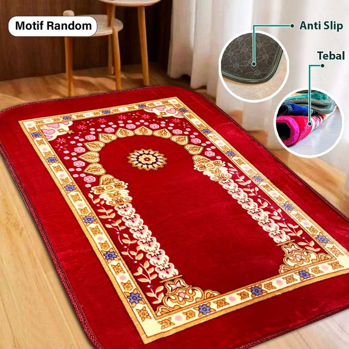 Terlaris Sajadah Kiswah Non Rumbai 70X140 Turki Bludru Lembut Nyaman Empuk - 1311 - merah Keren