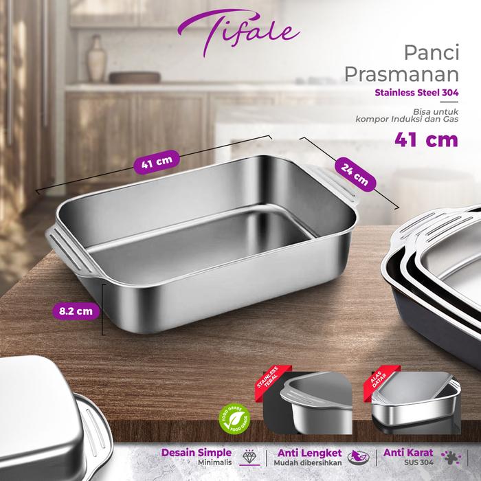 Terlaris [UKURAN 41CM] Tifale Panci Prasmanan Stainless Steel 304 - Cocok untuk Kompor Induksi & Gas - 41CM Keren