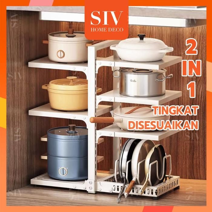 Murah 2-4 Tingkat Rak Panci Dapur Susun Rak Panci Bawah Wastafel Stainless - 3+2 hitam Elegan
