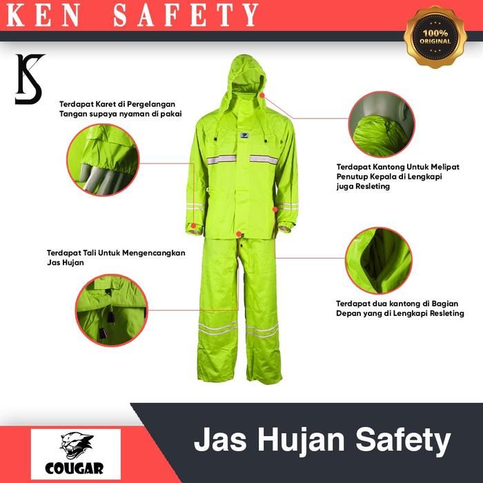 Terlaris Jas Hujan Safety Rain Wear Cougar Oxford 1 Set - Hijau M Elegan