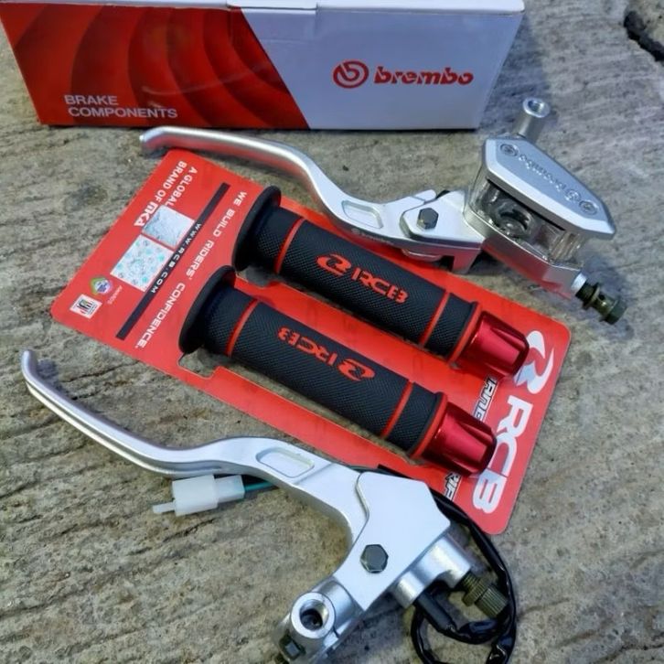 promo paket 3in1 master rem Brembo silver plus handgrip original RCB HG55 plus Jalu stang Garis cnc Universal