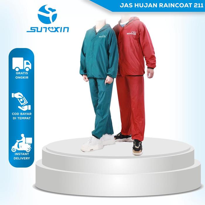Terlaris SUNXIN-Jas Hujan setelan dewasa 211/ Bahan Taslan Premium Quality - merah Standar Elegan