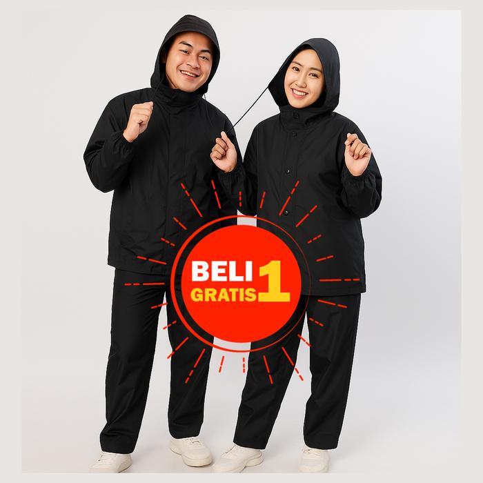 Terlaris Setelan Jas Hujan Beli 1 Dapat 2 Jas Hujan mantel Tebal premium - Hitam L HITAM L Keren