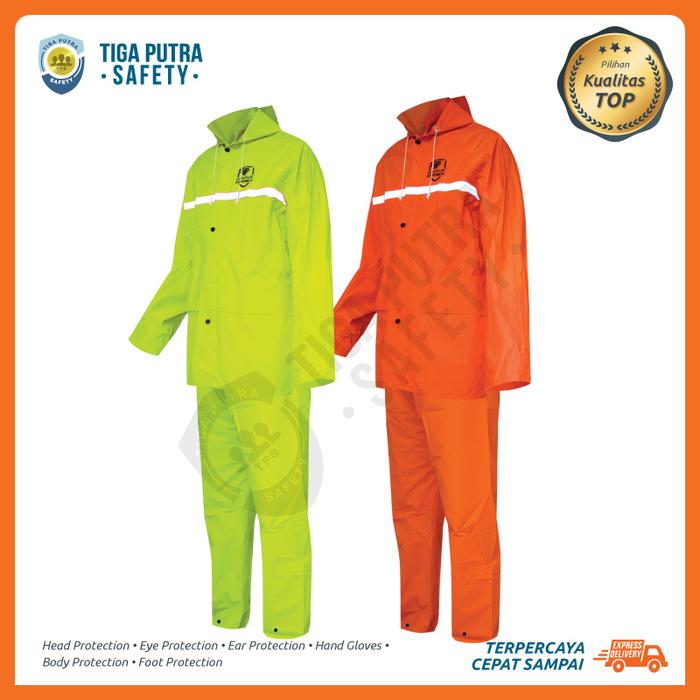 Terlaris Jas Hujan Safety Rainshield Gosave PVC Baju Celana Motor / Rainsuit - Hijau L Elegan