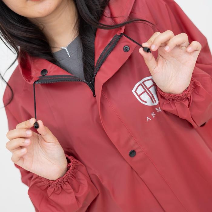 Terlaris JAS HUJAN RAINCOAT TERBAIK Pria Wanita Dewasa Bahan Tebal Karet PVC 0.25 Anti Rembes BY ARMOR - Merah L Elegan