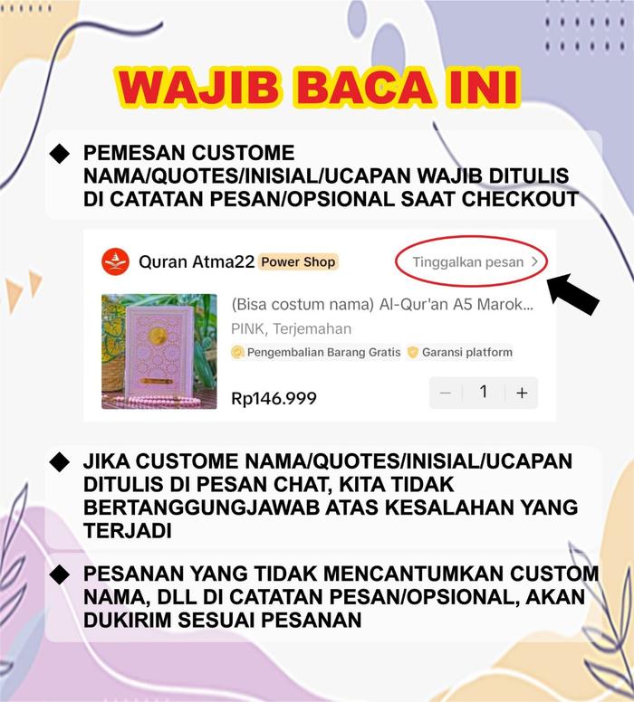 Terlaris (Costum nama) A5 Al-Qur'an Maroko Pattern Free Tasbih Premium Quran Alquran - PINK Full Arab Elegan