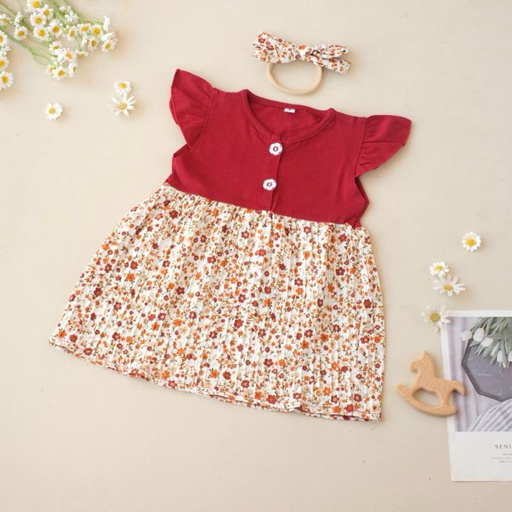 Dress bayi Azalea bahan katun elora crinkle bonus bando 0-18 bulan