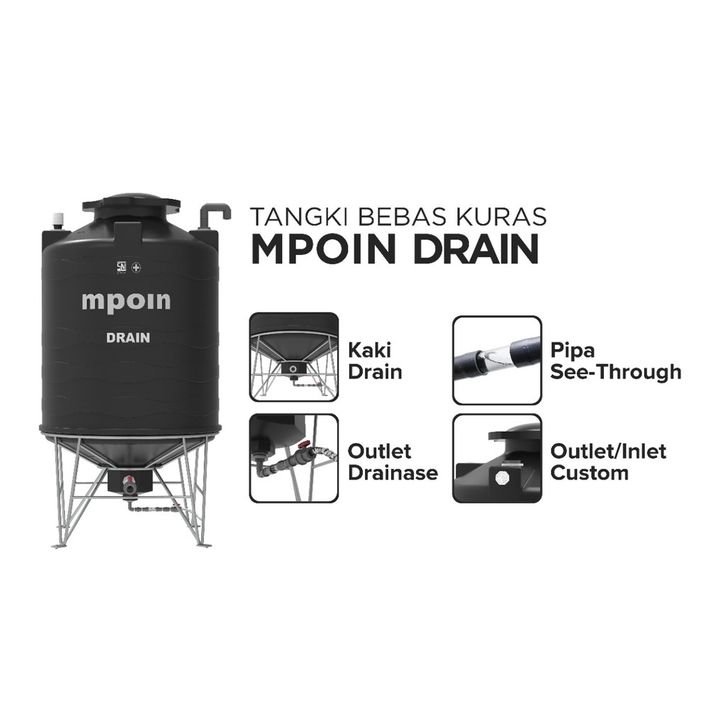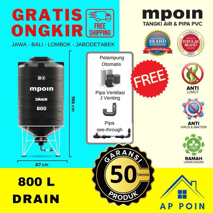 TANGKI TANDON TOREN AIR MPOIN 800 L DRAIN BEBAS KURAS GARANSI 25 TAHUN