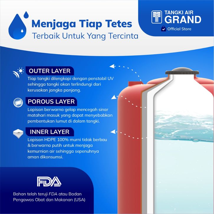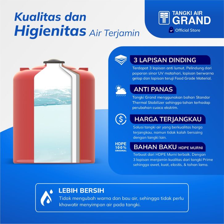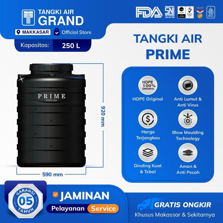 TANGKI TOREN TANDON AIR PRIME 250 L TIDAK BERBAU & HIGIENITAS