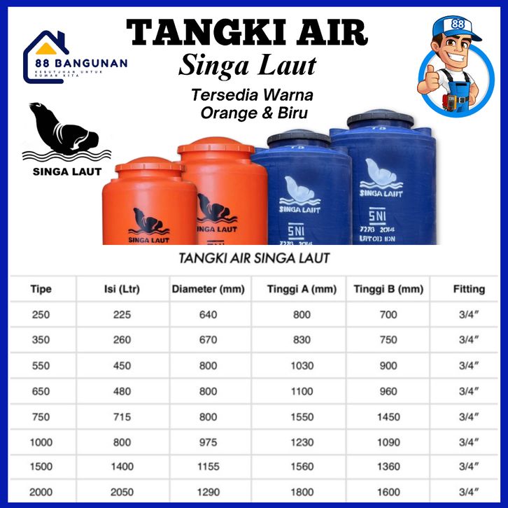 [KHUSUS T] TANGKI AIR / TANDON / TOREN SINGA LAUT BIRU 250 L - 350 L