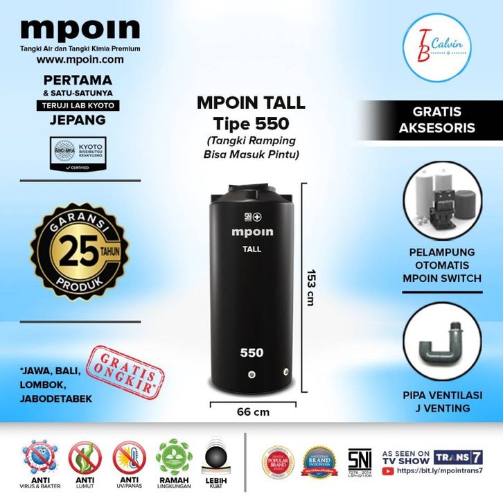TANGKI TANDON TOREN AIR MPOIN PLUS 550 LITER TALL