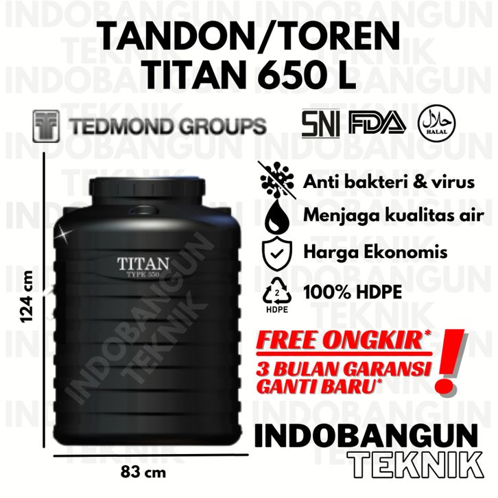 TANDON TOREN TANGKI AIR TITAN 250 350 550 650 1000 LITER HARGA MURAH TEDMOND GRAND ANTI LUMUT HALAL