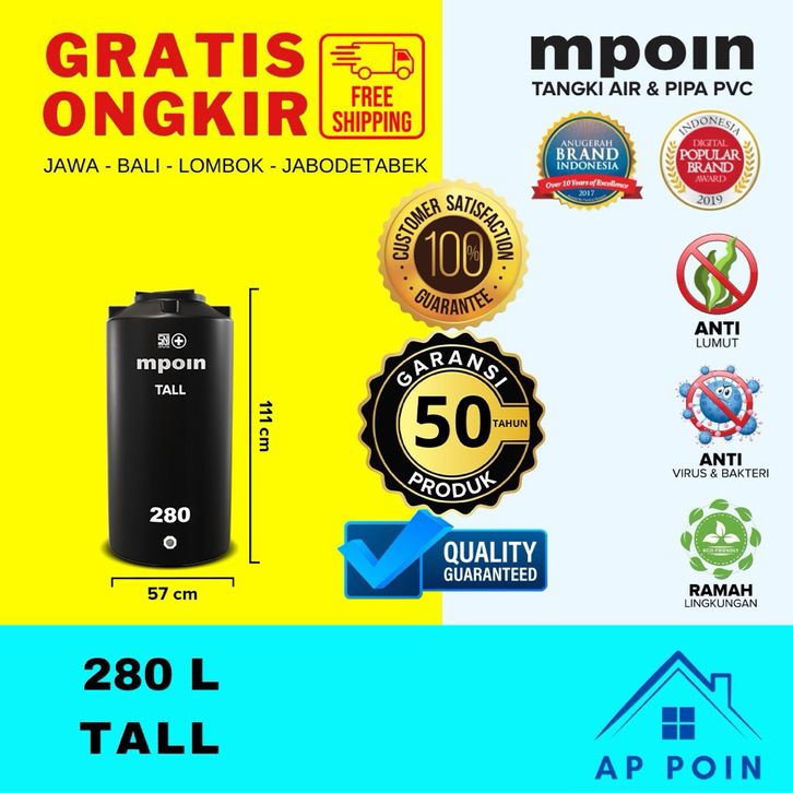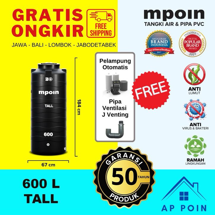 TANGKI TANDON TOREN AIR MPOIN TALL 800 L RAMPING & MULTIFUNGSI GARANSI 25 THN