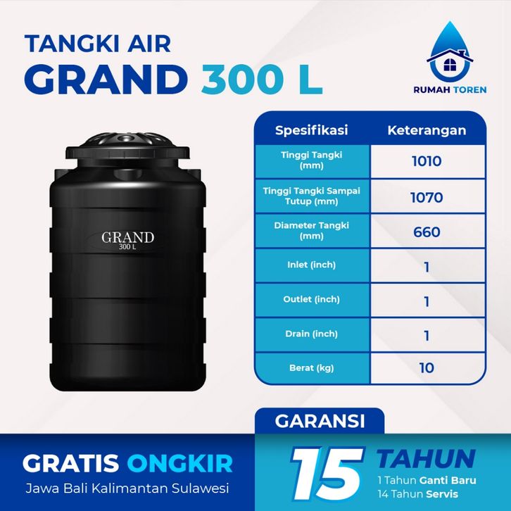 TANGKI TANDON TOREN AIR GRAND 300 LITER ANTI LUMUT