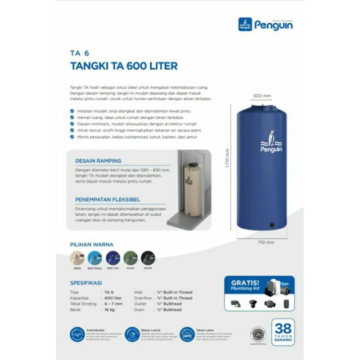 TANDON AIR / TANGKI AIR / TOREN AIR PENGUIN TALL RAMPING TA 6 VOL 600 LITER INVOICE