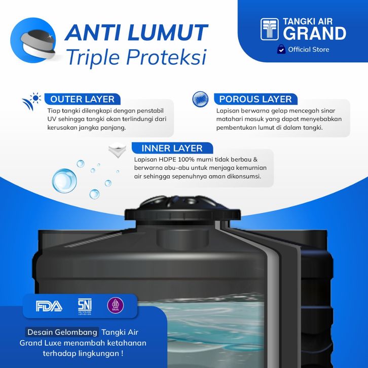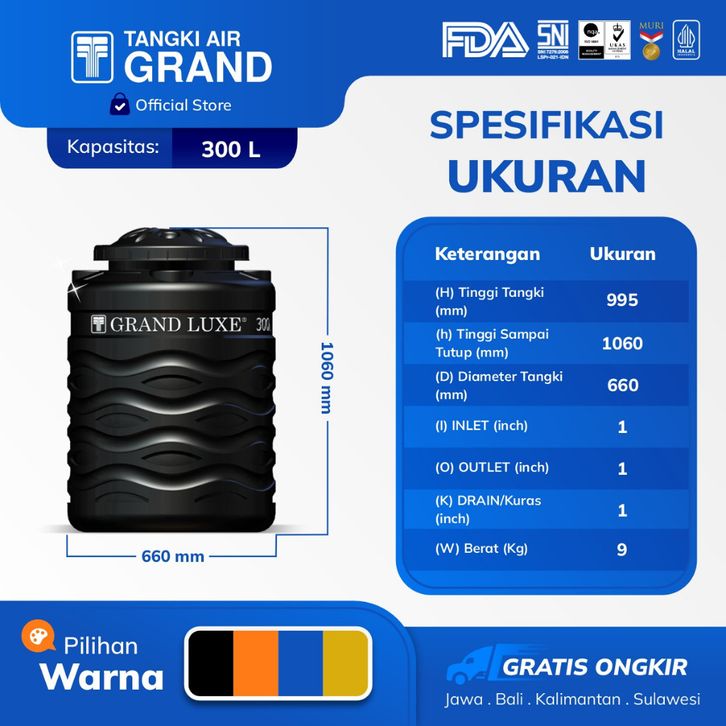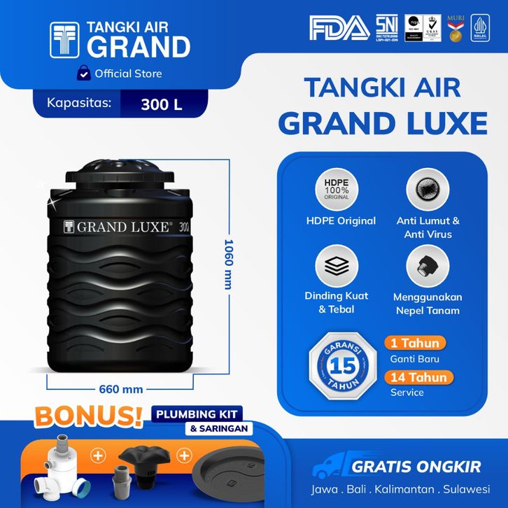GRAND LUXE TANDON | TOREN | TANGKI AIR 300 LITER ANTI LUMUT - GARANSI RESMI 15 TAHUN (GLX300)