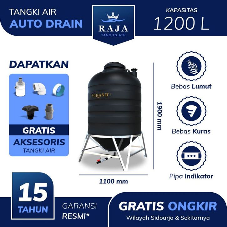TANGKI TANDON TOREN GRAND AUTO DRAIN 1200 L BEBAS KURAS ANTI LUMUT