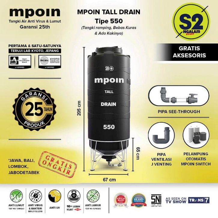 TANDON AIR TOREN AIR TANGKI AIR MPOIN TALL DRAIN 550 LITER (INVOICE)