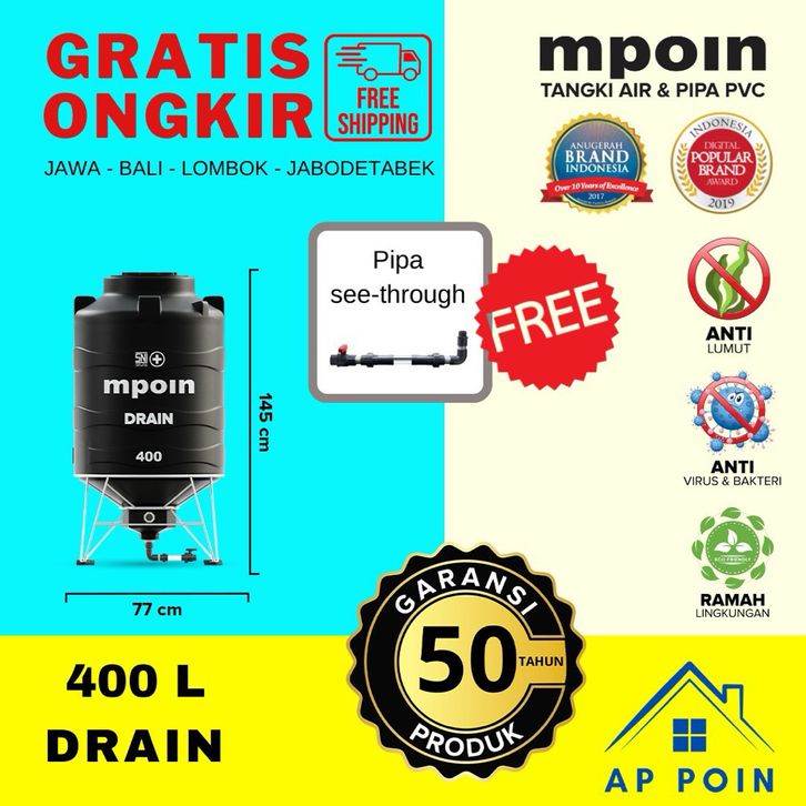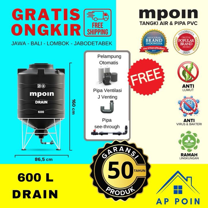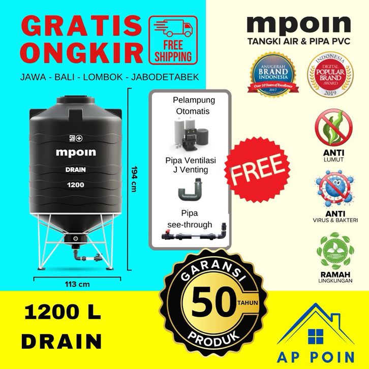 TANGKI TANDON TOREN AIR MPOIN 1200 L DRAIN BEBAS KURAS GARANSI 25 TAHUN