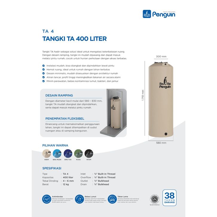 TANDON AIR PENGUIN TA 4 6 8 10 TALL TANK TOREN AIR TANGKI AIR