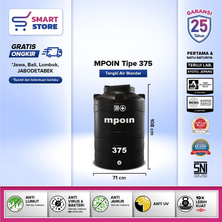 TANDON TOREN TANGKI AIR MPOIN WAVE 300 - 2400 L ANTI BAKTERI ANTI LUMUT GARANSI 50 TAHUN