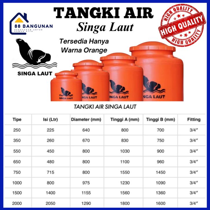 [KHUSUS T] TANGKI AIR / TANDON / TOREN SINGA LAUT 250 L - 350 L