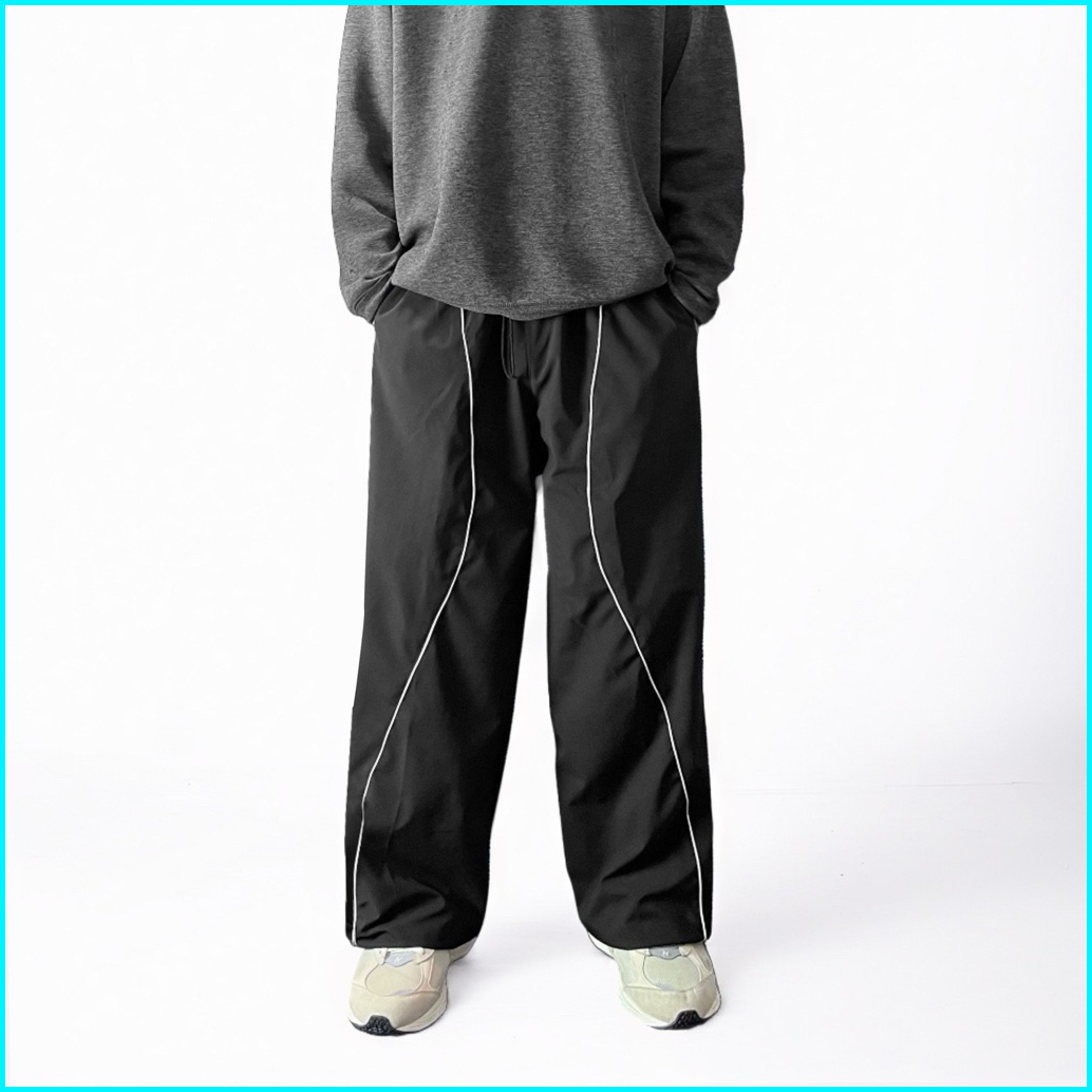 Celana Panjang Nylon Baggy Trackpants Wave Loose Hitam Nubies